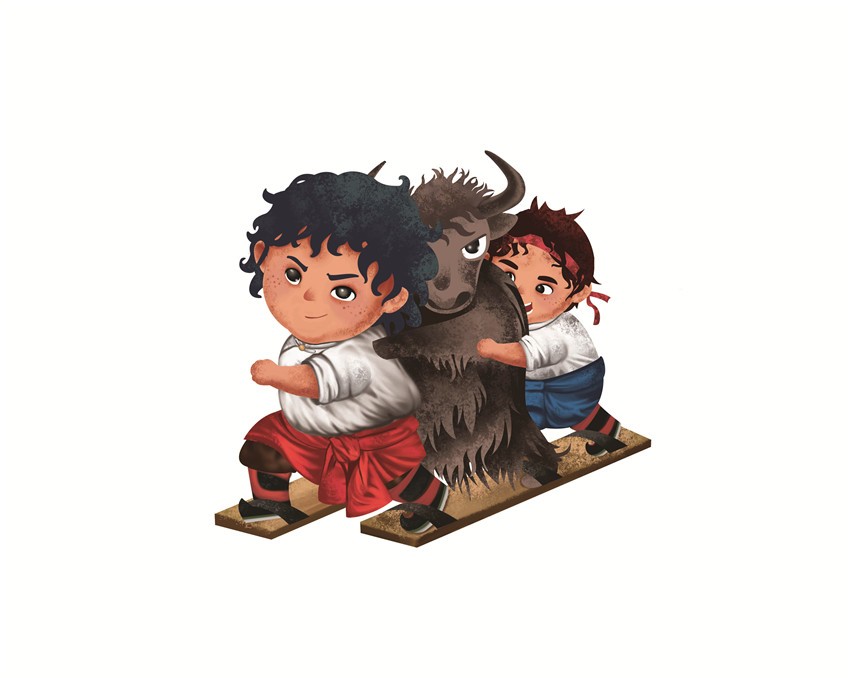 據(jù)悉,該卡通形象由康巴文化研究院設(shè)計(jì),最早出現(xiàn)在去年的環(huán)貢嘎山百公里越野挑戰(zhàn)賽上,在各國(guó)越野高手云集的賽場(chǎng)上,一名身著傳統(tǒng)服飾的小藏娃牽著牦牛奔跑的形象令人過(guò)目不忘。而此次省民運(yùn)會(huì)將繼續(xù)沿用“小藏娃和牦牛洛洛的形象”,康巴文化研究院組織專(zhuān)人設(shè)計(jì),按照既生動(dòng)可愛(ài)又準(zhǔn)確把握運(yùn)動(dòng)項(xiàng)目特征的要求,將此次運(yùn)動(dòng)會(huì)中的蹴球、陀螺、射弩、高腳競(jìng)速、板鞋競(jìng)速、押加、珍珠球、民族式摔跤等8個(gè)競(jìng)賽項(xiàng)目以卡通形象展現(xiàn)。