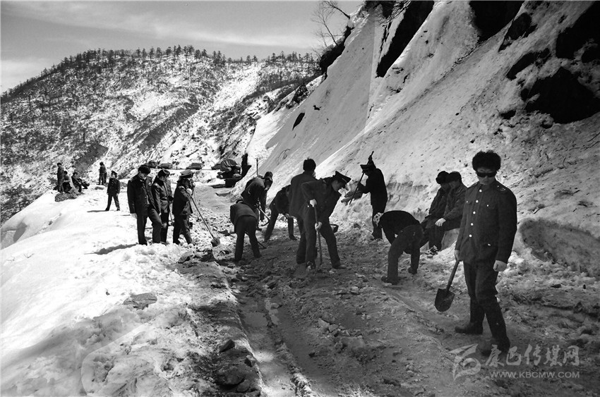 冒著生命危險修筑川康公路的解放軍。 資料圖片