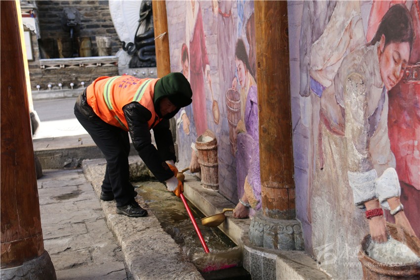 每逢節(jié)假日,是環(huán)衛(wèi)工人最忙最累的時(shí)候。2月5日下午,康定強(qiáng)盛公司清洗組組長楊曉康帶著全組工作人員來到康定市水井子,打掃整個(gè)水井子的環(huán)境衛(wèi)生。“初一‘搶頭水’是多年來康定市民的過年習(xí)俗,我們現(xiàn)在把這里打掃干凈,讓市民們在‘搶頭水’時(shí)有干凈整潔的環(huán)境。”楊曉康告訴記者。