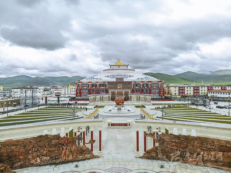 活動中心最“惹眼”的建筑,是一棟外形神似牧區(qū)帳篷的三層主體建筑。主體建筑的頂部,借鑒了石渠縣色須寺的外形設計,建筑外部的壁畫均為當地手工藝人親手繪制?;顒又行牡膹V場上,以微縮的形式展現石渠縣最具代表性的景點,如石經城、石經墻等。