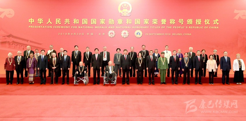 9月29日,中華人民共和國國家勛章和國家榮譽稱號頒授儀式在北京人民大會堂金色大廳隆重舉行。習近平等黨和國家領導人同國家勛章和國家榮譽稱號獲得者合影。新華社記者 龐興雷 攝