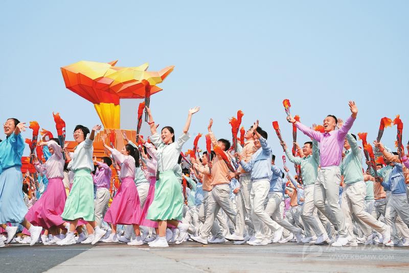群眾游行中的凝心鑄魂方陣。 新華社記者王毓國(guó)攝