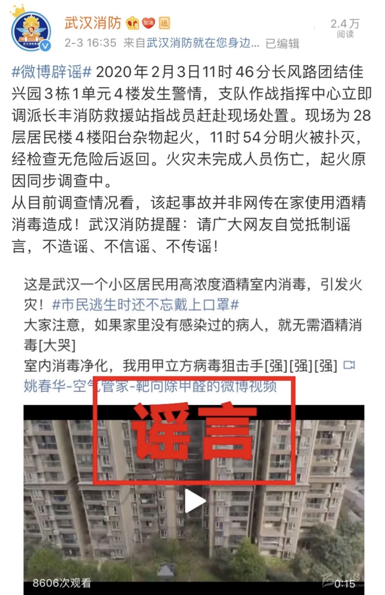 武漢消防在微博回應(yīng)