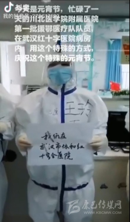 今年的元宵節(jié),注定是一個不平凡的日子。今天,川北醫(yī)學(xué)院援助湖北醫(yī)療小分隊的醫(yī)護(hù)人員,在武漢市協(xié)和紅十字會醫(yī)院,通過視頻向全市人民祝福元宵節(jié)快樂,表達(dá)眾志成城、抗擊疫情的堅定信心。