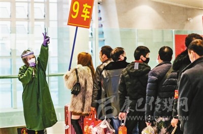 為在疫情期間幫助外出務工人員安全、順利返崗就業(yè),宜賓市先后采用專列、包車、包機等多種方式免費運送務工人員前往省內(nèi)外各地市。圖為當日宜賓西站客運員引導外出務工人員有序登車。