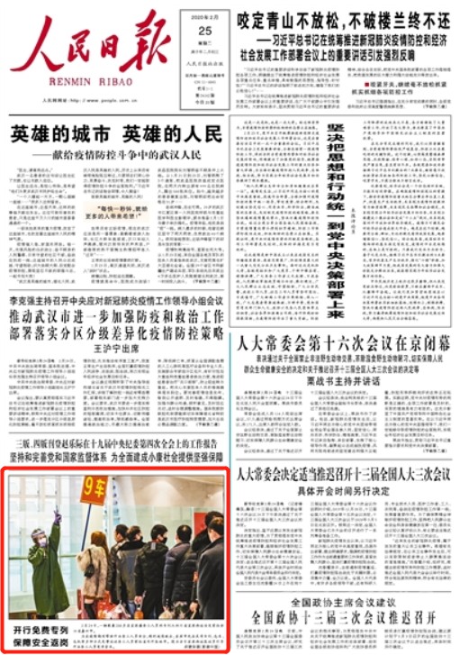 2月25日,《人民日報》刊登題為《開行免費專列 保障安全返崗》的報道,聚焦川籍務工人員的免費返崗專列。