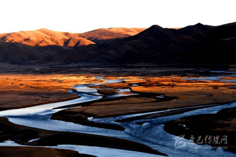 這是在扎溪卡大草原朝霞映襯下的雅礱江源頭(2019年11月2日攝)。新華社記者 陳天湖 攝