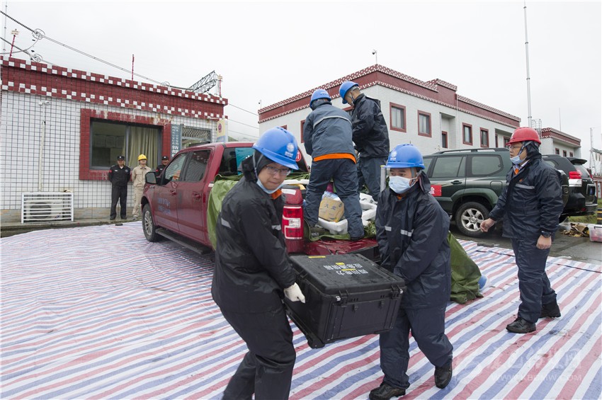 獲知“災情”的第一時間, 國網四川省電力公司馬上發(fā)布集結準備信息,聯(lián)系國網陜西省電力公司、重慶市電力公司進行應急聯(lián)動支援。國網甘孜供電公司立即啟動應急預案迅速響應,對災害進行先期處置。來自陜西、重慶和四川應急中心、信通公司、自貢公司、遂寧公司、眉山公司、電力醫(yī)院等6家基層單位的11支應急隊伍全副武裝,攜帶工器具和應急救援物資,在蒲江集結后,頂風冒雨,遠距離奔襲7小時抵達“災區(qū)”。
