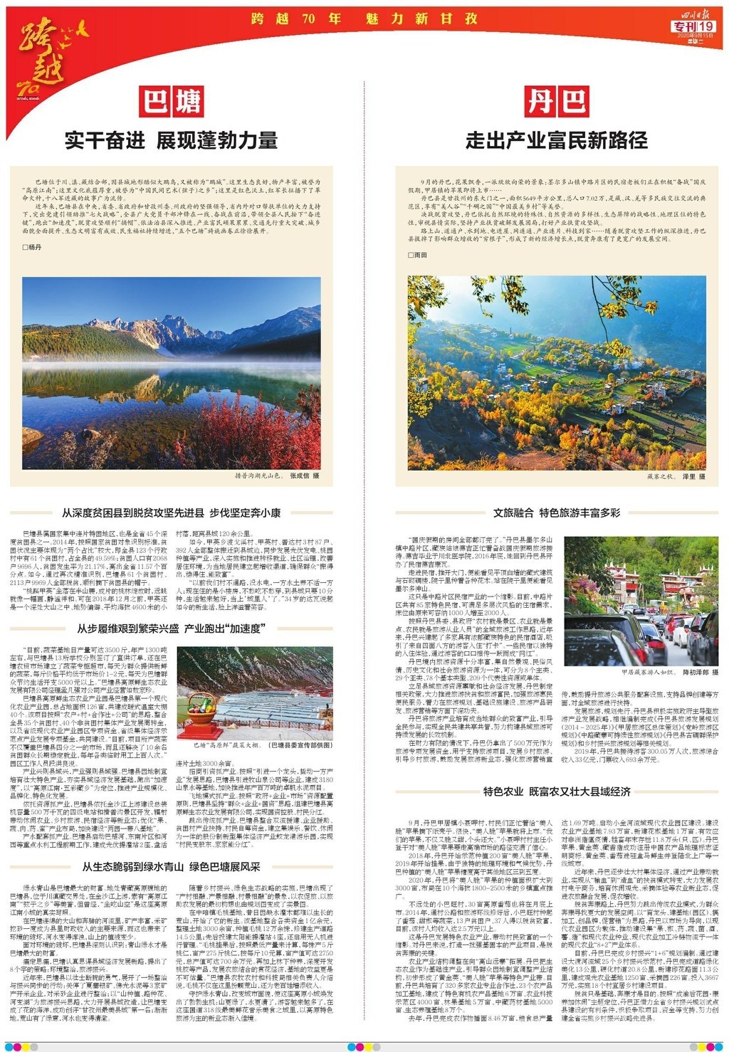 今天,四川省委機(jī)關(guān)報——四川日報,推出12個整版的特別報道“跨越70年 魅力新甘孜”,圖文并茂,濃墨重彩地展現(xiàn)甘孜州70年砥礪奮進(jìn)的光輝歲月。