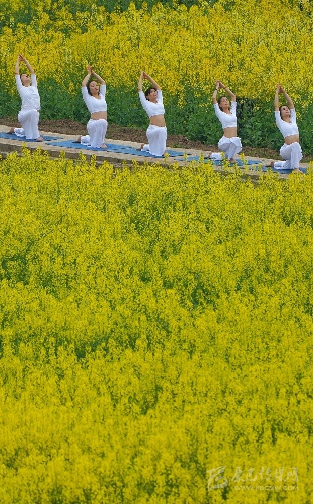 在南充市蓬安縣新園鄉(xiāng)踏坡梁村,來自省內(nèi)外的游客在數(shù)千畝油菜地里練瑜伽、騎賽車、秀旗袍、放風箏。尹鋼 攝 (資料圖)