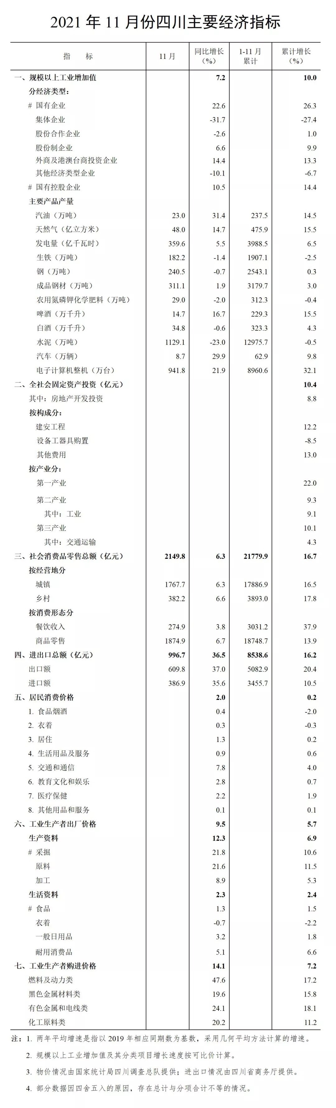 12月16日,四川省統(tǒng)計(jì)局官微發(fā)布《2021年1-11月四川省國民經(jīng)濟(jì)主要指標(biāo)數(shù)據(jù)》,具體如下: