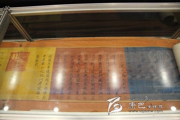 據(jù)介紹,明成祖永樂十一年封誥為國家一級文物,系明永樂帝成祖朱棣于明永樂十一年(1413)敕封噶瑪噶舉楚布寺第二世司徒活佛曲吉降村為“灌頂圓通妙濟國師”時頒賜的。該封誥質(zhì)地為宮廷誥文專用彩色云綾紋錦,由藍、明黃、白、灰、褐五色錦帛分段依次裱接為手卷形制。封誥用漢藏兩種文字墨書,漢文居右、直行,共20行、145字、楷書;藏文居左、橫行、共四行、行書。封誥右藍色錦帛織二龍及“奉天誥命”四字。該封誥真實地記載了明王朝敕封噶瑪噶舉派高僧,有效管理藏區(qū)地方事務(wù)的史實,對研究明代中央王朝與藏區(qū)關(guān)系具有重要的史料價值。