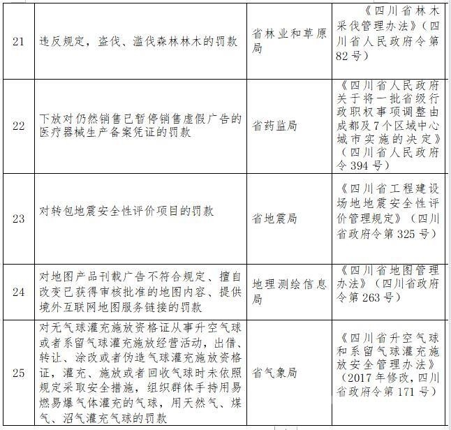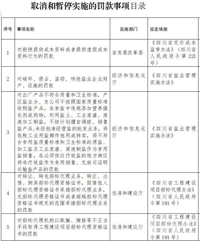匯總所有意見建議后,《四川省人民政府關(guān)于取消和暫停行使一批罰款等事項(xiàng)的決定(征求意見稿)》決定取消和暫停行使25項(xiàng)罰款事項(xiàng),其中取消19項(xiàng),暫停行使6項(xiàng)。罰款事項(xiàng)取消和暫停行使后,依照法定程序修訂相關(guān)省政府規(guī)章。