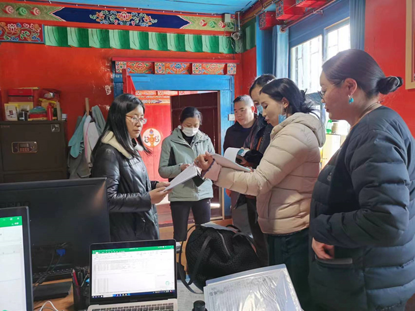手拿黨的二十大代表候選人推薦人選測評表,西藏山南市隆子縣玉麥鄉(xiāng)黨委副書記、鄉(xiāng)長仁青平措認真閱讀,逐一填下自己的意見。