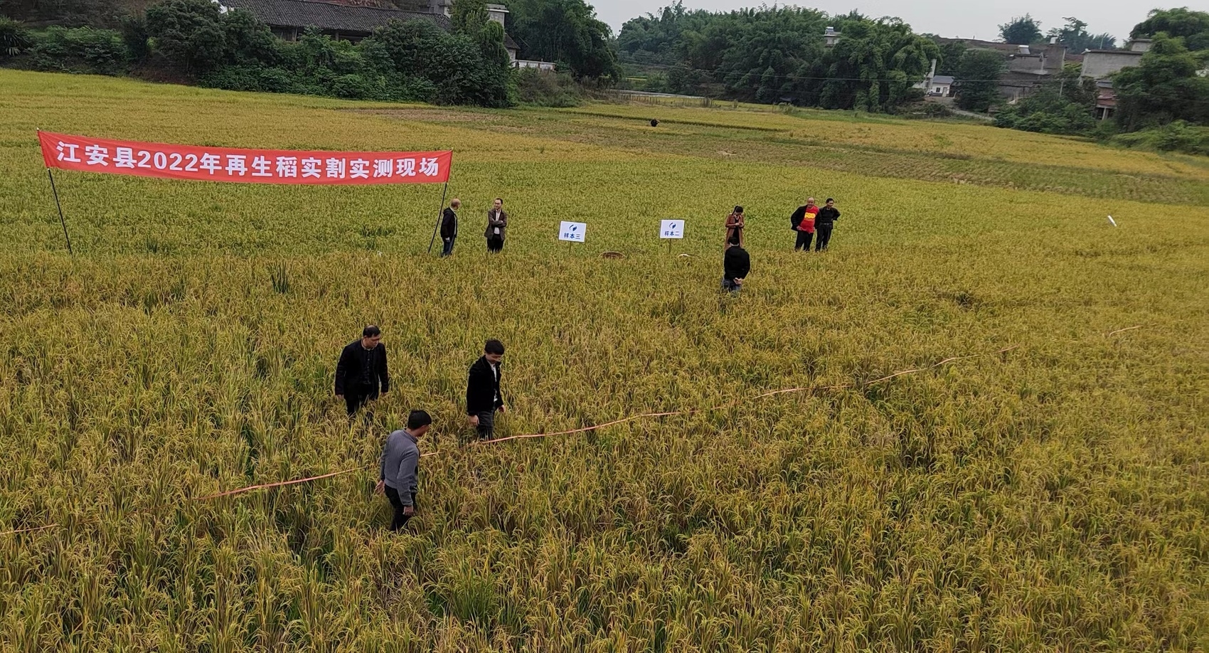 眼下,川南地區(qū)的再生稻陸續(xù)收獲。就在10月11日,江安縣農(nóng)業(yè)農(nóng)村局組織市縣專家對(duì)位于大田村的1000畝蓄留再生稻高產(chǎn)示范片進(jìn)行測(cè)產(chǎn)驗(yàn)收,經(jīng)選取3個(gè)代表性田塊、現(xiàn)場(chǎng)收割、稱重、測(cè)定水分、扣除雜質(zhì)、計(jì)算產(chǎn)量等環(huán)節(jié),測(cè)得再生稻平均畝產(chǎn)達(dá)276.36公斤?!斑@個(gè)產(chǎn)量和去年基本持平?!苯部h農(nóng)業(yè)農(nóng)村局糧油經(jīng)作股股長(zhǎng)董玉蘭介紹,今年全縣蓄留再生稻26.04萬(wàn)畝,力爭(zhēng)實(shí)現(xiàn)再生稻有收面積21.7萬(wàn)畝。