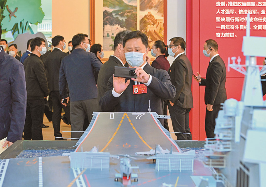 10月17日晚,參加黨的二十大的代表們來(lái)到北京展覽館參觀“奮進(jìn)新時(shí)代”主題成就展。 新華社記者 陳益宸 攝