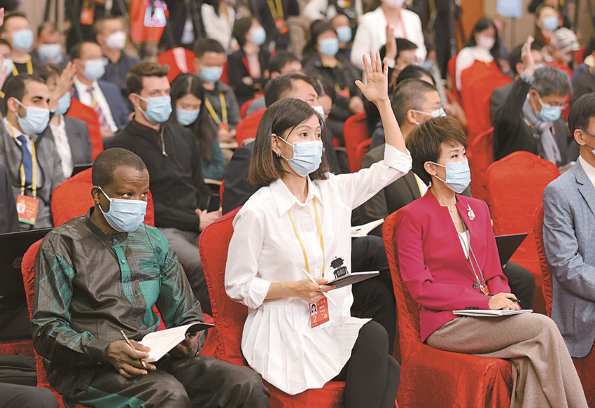 記者在分會(huì)場(chǎng)舉手提問。 新華社 發(fā)