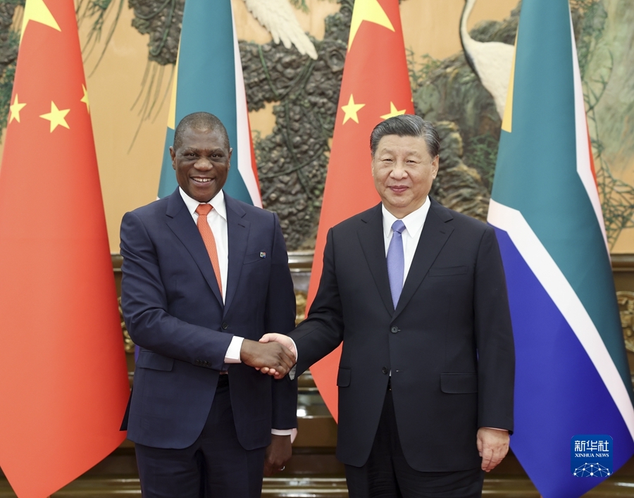 習(xí)近平強(qiáng)調(diào),中方支持南非探索符合本國國情的現(xiàn)代化道路,愿同南非進(jìn)一步夯實(shí)政治互信基礎(chǔ),提升互利合作水平。中方愿同南非等非洲國家一道,落實(shí)中國支持非洲工業(yè)化、農(nóng)業(yè)現(xiàn)代化、人才培養(yǎng)三項(xiàng)舉措以及高質(zhì)量共建“一帶一路”的八項(xiàng)行動,打造一批高標(biāo)準(zhǔn)、惠民生、可持續(xù)的合作項(xiàng)目,提升中非合作的戰(zhàn)略性和可持續(xù)性,推動構(gòu)建高水平中非命運(yùn)共同體。雙方應(yīng)繼續(xù)密切在金磚國家機(jī)制內(nèi)合作,加強(qiáng)發(fā)展中國家團(tuán)結(jié)合作,推動全球治理體系朝著有利于發(fā)展中國家的方向發(fā)展。