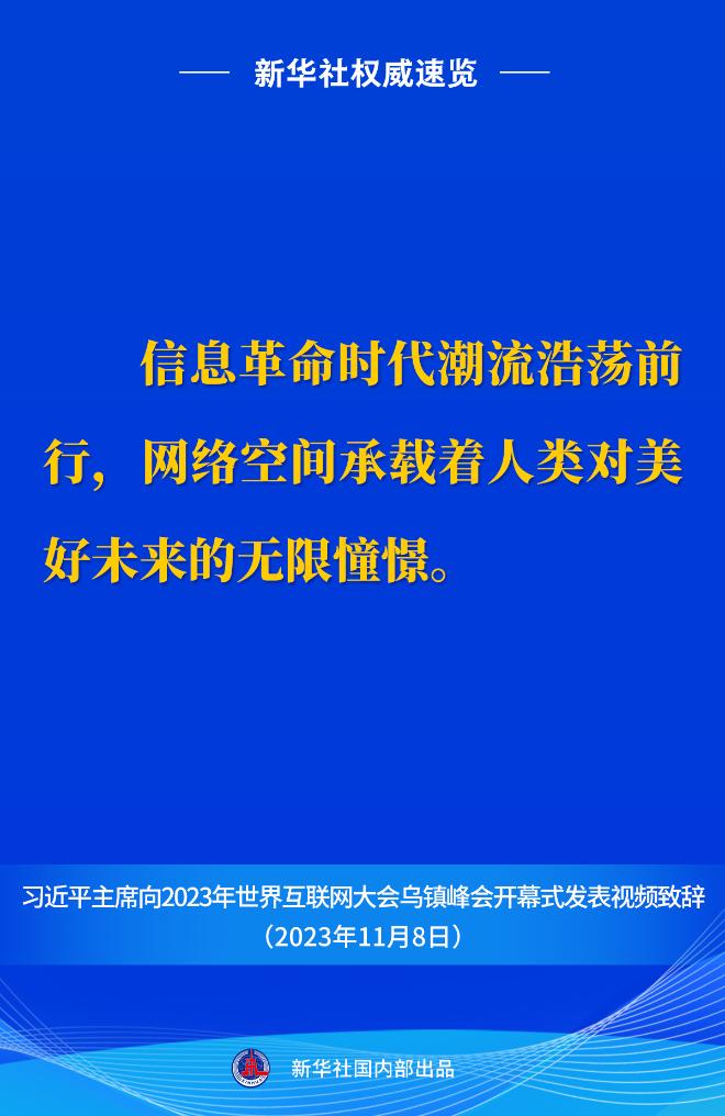 11月8日上午,國家主席習近平向2023年世界互聯(lián)網(wǎng)大會烏鎮(zhèn)峰會開幕式發(fā)表視頻致辭。一起來看金句。