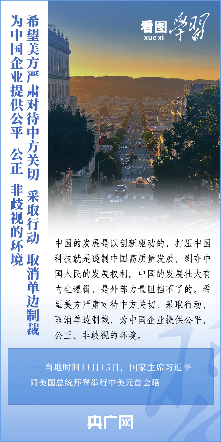 當?shù)貢r間11月15日,國家主席習近平在美國舊金山斐洛里莊園同美國總統(tǒng)拜登舉行中美元首會晤。兩國元首就事關中美關系的戰(zhàn)略性、全局性、方向性問題以及事關世界和平和發(fā)展的重大問題坦誠深入地交換了意見。習近平主席指出,大國競爭解決不了中美兩國和世界面臨的問題。這個地球容得下中美兩國。中美各自的成功是彼此的機遇。一起來學習!