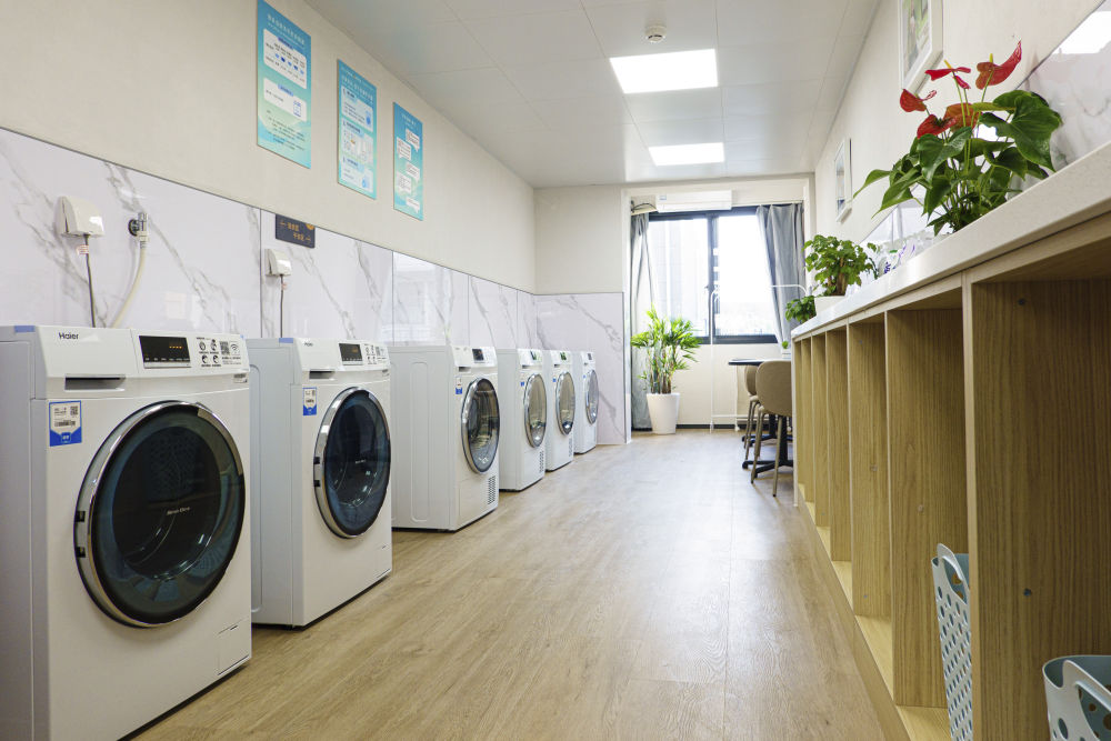 閔行區(qū)新時代城市建設(shè)者管理者之家的共享廚房和共享洗衣房。