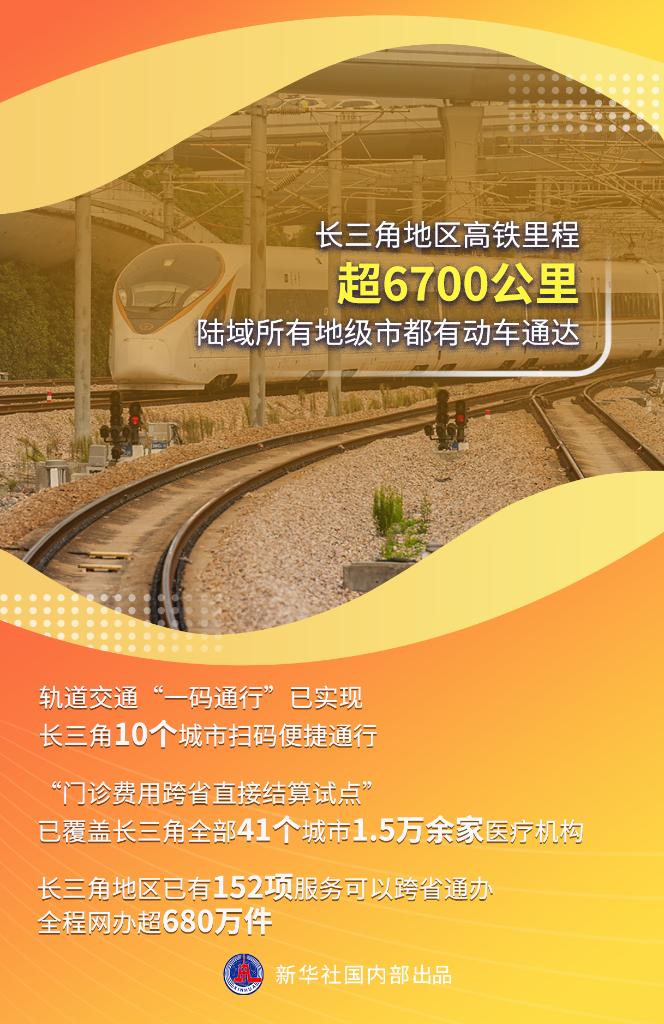 民生服務“一卡通”:軌道交通“一碼通行”已實現(xiàn)長三角10個城市掃碼便捷通行;“門診費用跨省直接結(jié)算試點”已覆蓋長三角全部41個城市1.5萬余家醫(yī)療機構(gòu)。