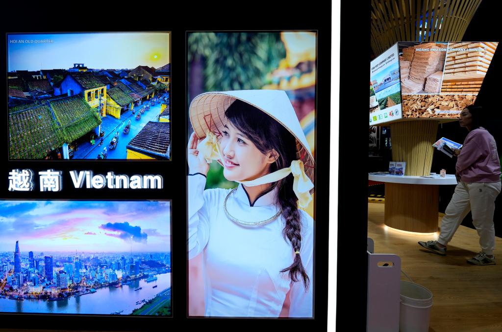 11月6日拍攝的第六屆進(jìn)博會(huì)國家展越南展臺(tái)。新華社記者 張建松 攝