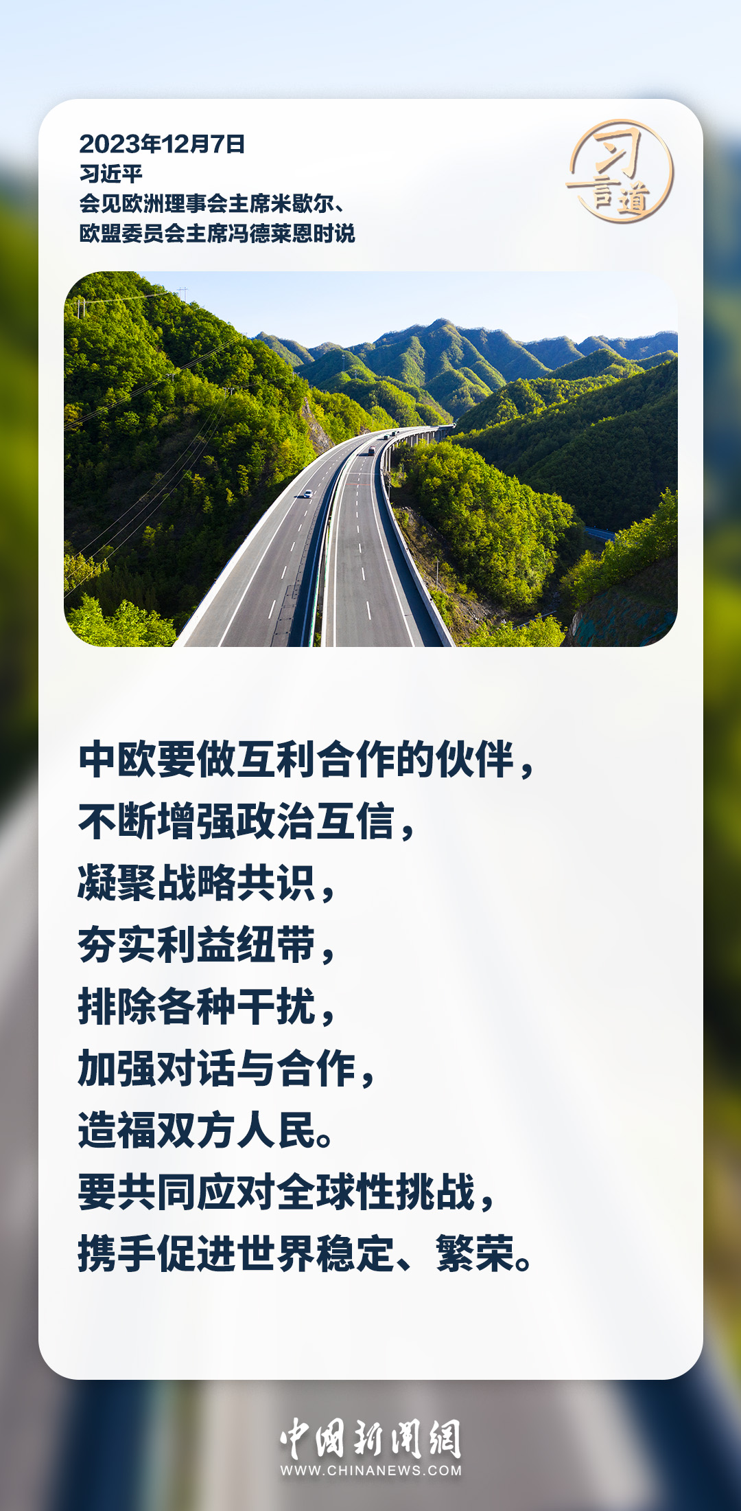 12月7日,國家主席習(xí)近平在釣魚臺國賓館會見來華舉行第二十四次中國—歐盟領(lǐng)導(dǎo)人會晤的歐洲理事會主席米歇爾和歐盟委員會主席馮德萊恩。習(xí)近平說——