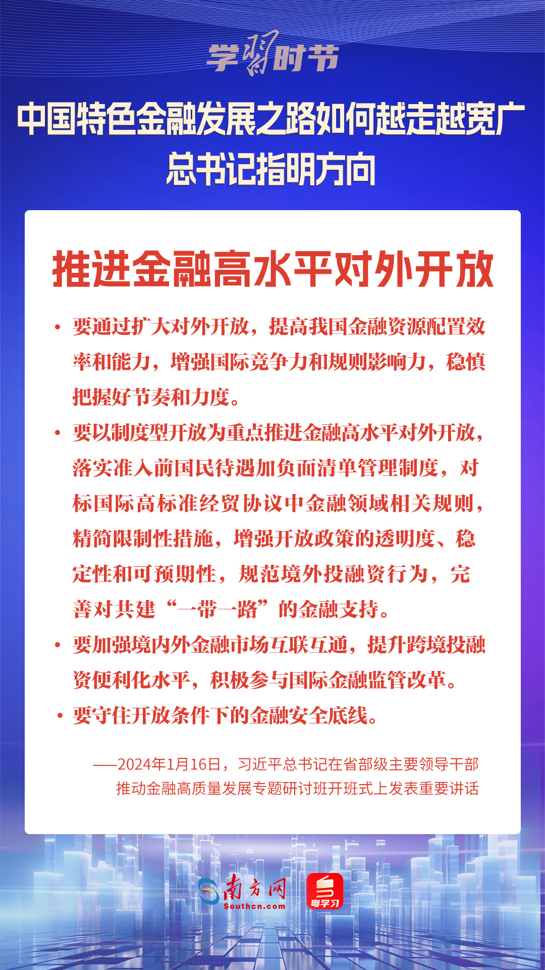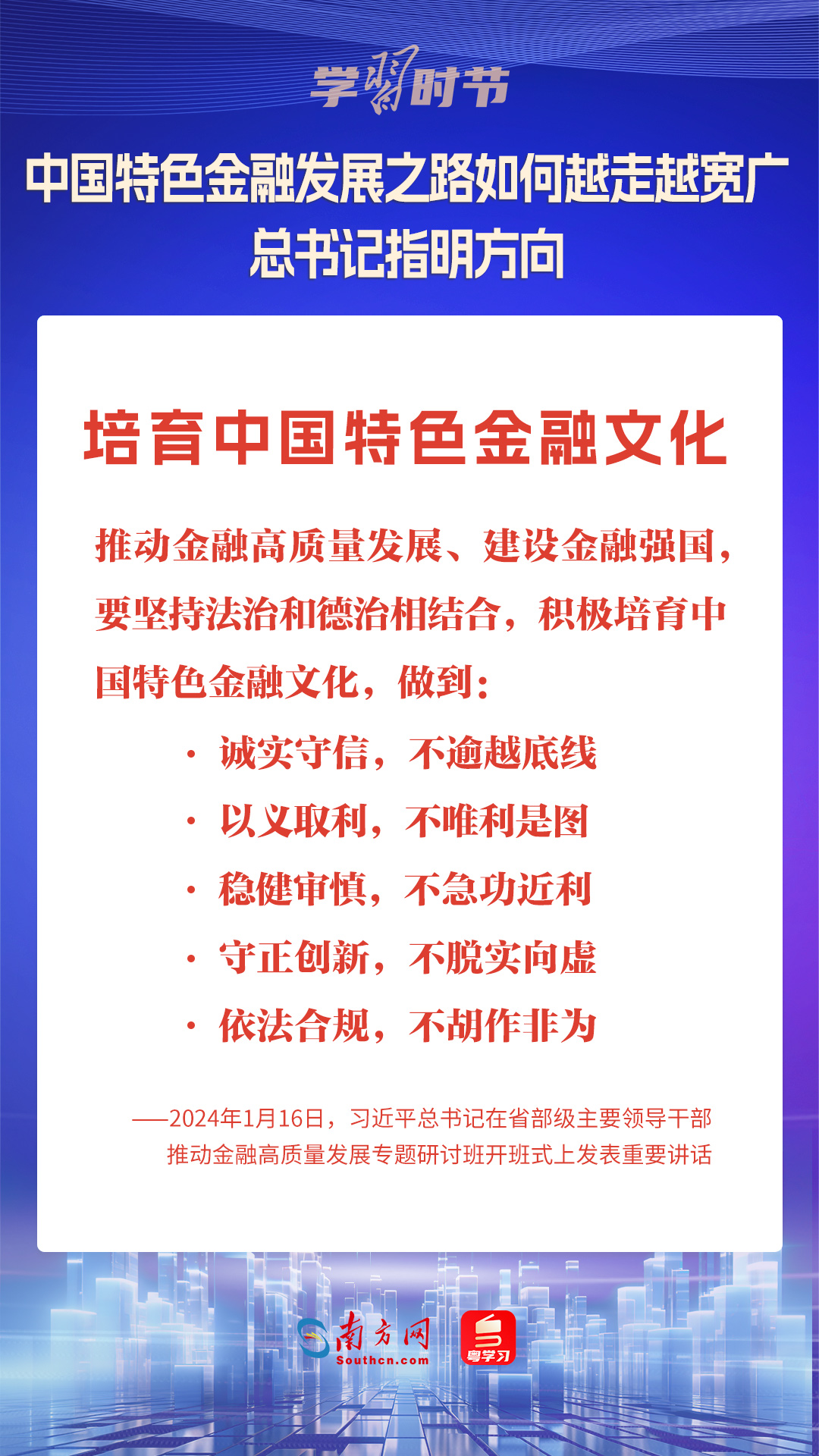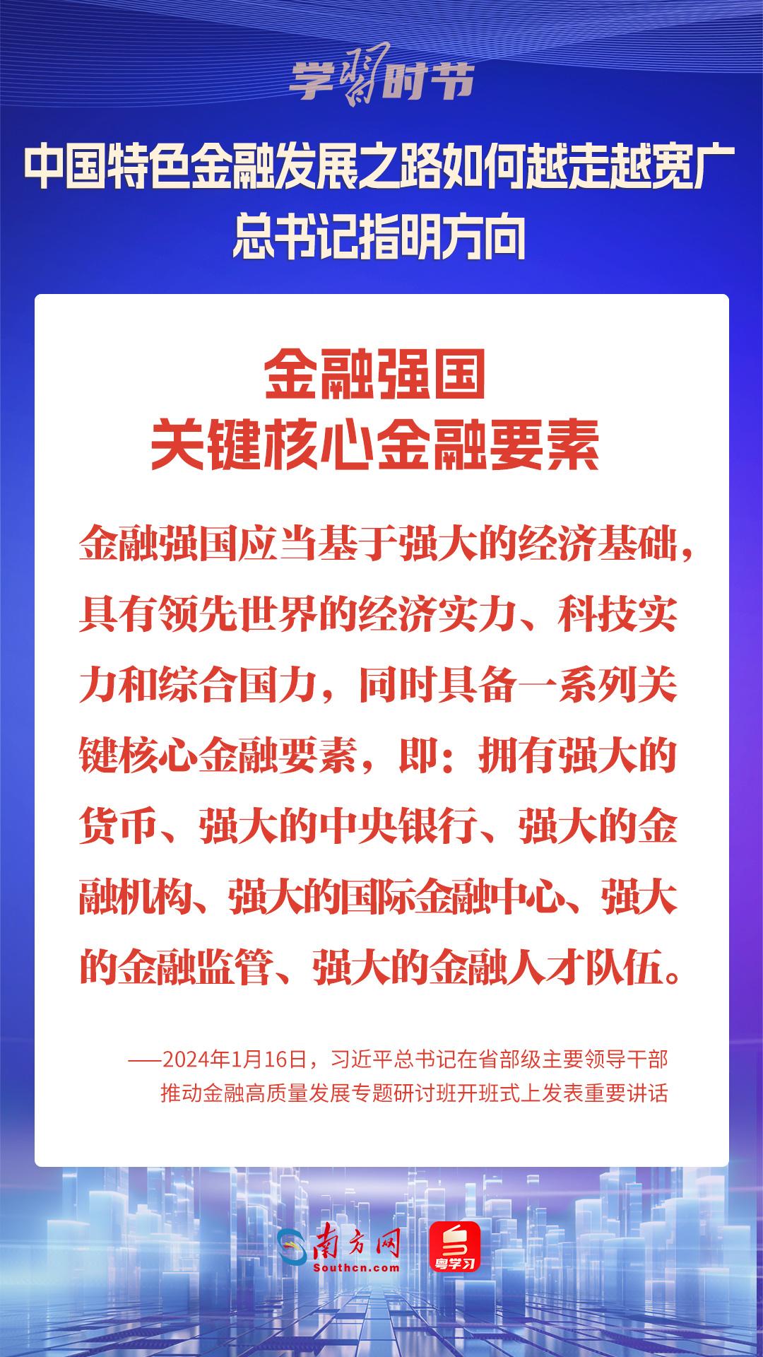 1月16日,中共中央總書(shū)記、國(guó)家主席、中央軍委主席習(xí)近平在省部級(jí)主要領(lǐng)導(dǎo)干部推動(dòng)金融高質(zhì)量發(fā)展專題研討班開(kāi)班式上發(fā)表重要講話,為中國(guó)特色金融發(fā)展之路指明方向。