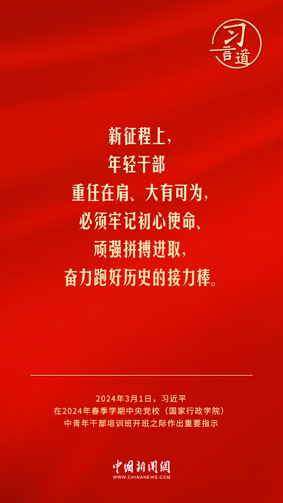 年輕干部是黨和國家事業(yè)發(fā)展的生力軍,是中國特色社會主義事業(yè)的接班人。3月1日,2024年春季學(xué)期中央黨校(國家行政學(xué)院)中青年干部培訓(xùn)班開班。習(xí)近平總書記作出重要指示。