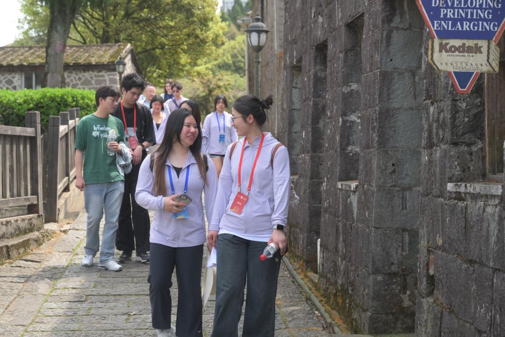 ??3月25日,福州大學外國語學院學生(前右)與美國太平洋大學學生(前左)在福州鼓嶺老街漫步交流。當日,來自美國俄勒岡大學、布朗大學、奧斯威格高級中學等校的美國學生與福州大學學生齊聚福州鼓嶺,參加“讀懂中國 相約福建”友好交流活動。兩國青少年走訪鼓嶺老街、萬國公益社、柳杉王公園等,感受鼓嶺百年中外交融歷史風貌,了解中美交往往事,暢談期待與希望,再續(xù)中美民間友好交往的“鼓嶺故事”。 新華社記者林善傳攝