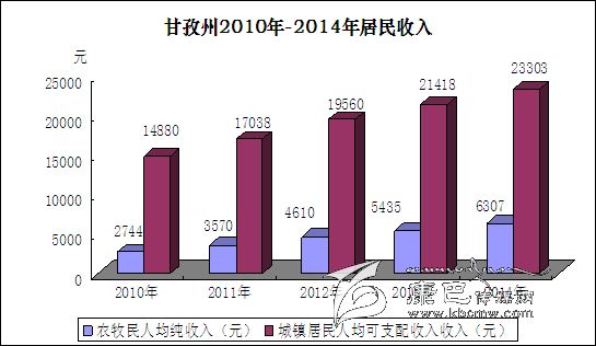 城鄉(xiāng)居民收入持續(xù)較快增長。2014年,城鎮(zhèn)居民人均可支配收入23303元,增長8.8%;人均生活消費性支出16127元,增長8.1%;城鎮(zhèn)居民恩格爾系數(shù)為42.4%,同比下降0.4個百分點。農(nóng)牧民人均純收入6307元,增長16 %。全年生活消費支出人平達4515元,增長17.2%;農(nóng)村居民恩格爾系數(shù)為58.9%;較上年下降1.5個百分點。