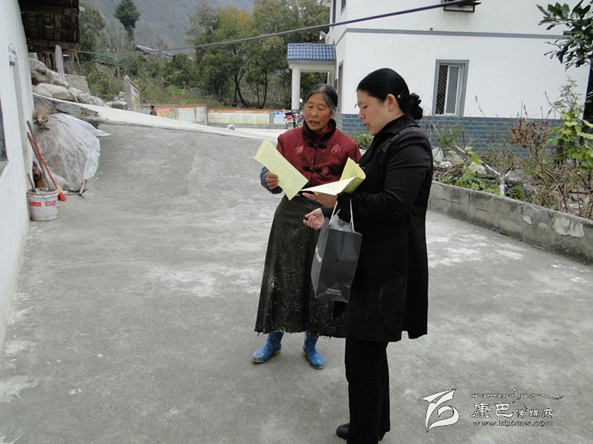 萬俊蓉下鄉(xiāng)宣傳惠農政策。