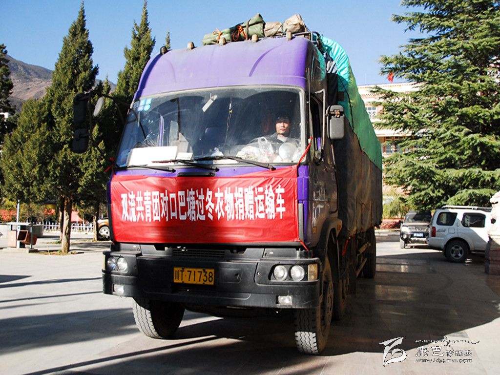 本網(wǎng)訊(賴琳琳 文/圖) 冬日的高原,氣候干燥寒冷。近日,一輛貼著“雙流共青團(tuán)對口巴塘過冬衣物捐贈運(yùn)輸車”鮮紅標(biāo)語的大貨車停在巴塘縣政府門口,志愿者們正忙碌地搬運(yùn)著物品。該車來自800公里外的雙流縣,裝滿了嶄新的棉衣、棉被、保暖鞋、圍巾等共計(jì)14041件過冬物資及愛心文具。