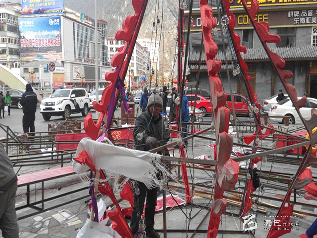 在新春來(lái)臨之際,記者在康定街頭發(fā)現(xiàn)有不少的彩燈裝飾師傅正忙碌地制作、安裝新春燈飾。