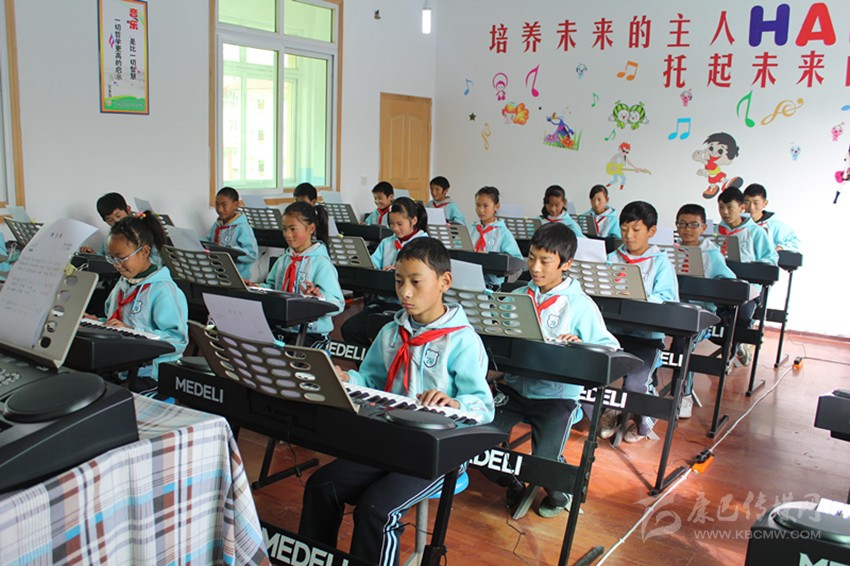 在甘孜縣城關(guān)第一完全小學(xué)的教室里,音樂教師正在教授孩子們識別五線譜,孩子們用稚嫩的雙手在電子琴鍵盤上彈奏著音樂的同時,嘴里還不斷的唱著“哆唻咪發(fā)嗦”。放學(xué)時,孩子們還沉浸在音樂的余韻中,興奮地給前來接送上課的父母們講述著課堂上的趣事。學(xué)生家長翁登不勝唏噓:“大娃娃讀一完小的時候,只有語文數(shù)學(xué)和藏文可以學(xué),其他的課沒有專門的老師教,現(xiàn)在小女兒好安逸,還有專門的音樂老師教他們唱歌,現(xiàn)在的老師真的很厲害!”