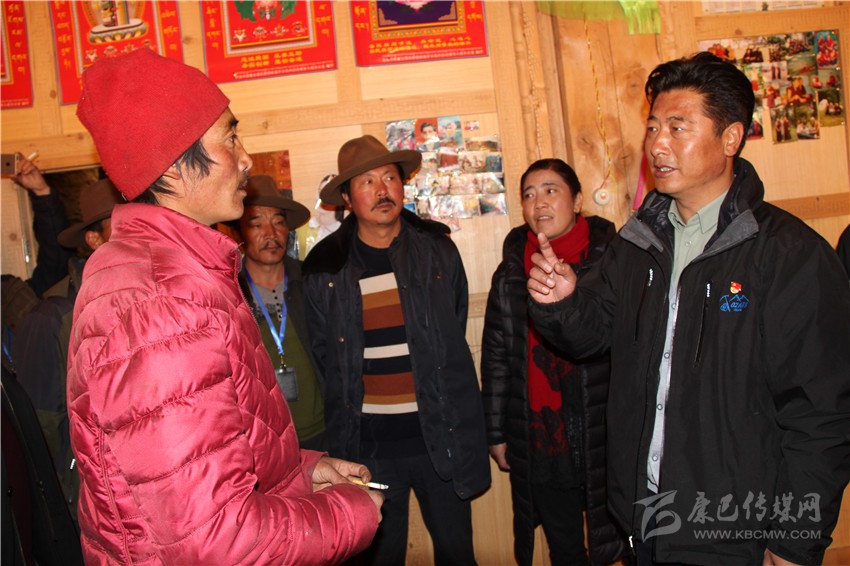 理塘縣委書記格勒多吉(右)與村民探討如何脫貧。