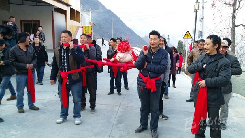新年的第一縷陽(yáng)光灑滿瀘定縣興隆鎮(zhèn)和平村,寂靜的山村在暖意融融的陽(yáng)光中蘇醒過(guò)來(lái),隨著春節(jié)的臨近,辛苦勞作了一年的村民,家家戶戶開(kāi)始?xì)⒛曦i迎新年。年豬文化已成為當(dāng)?shù)貍鞒芯眠h(yuǎn)的民俗文化。為適應(yīng)全域旅游的需要,興隆鎮(zhèn)和平村已經(jīng)連續(xù)幾年舉辦年豬文化節(jié),鄉(xiāng)村旅游不斷升溫,村民告訴筆者,和平村殺年豬比過(guò)春節(jié)還熱鬧,而且殺年豬的過(guò)程非常講究,選日子、焚香、祈福一樣都不能少。新年第一天,和平村年豬文化節(jié)盛大開(kāi)幕,年豬味兒,新年味兒十足。
