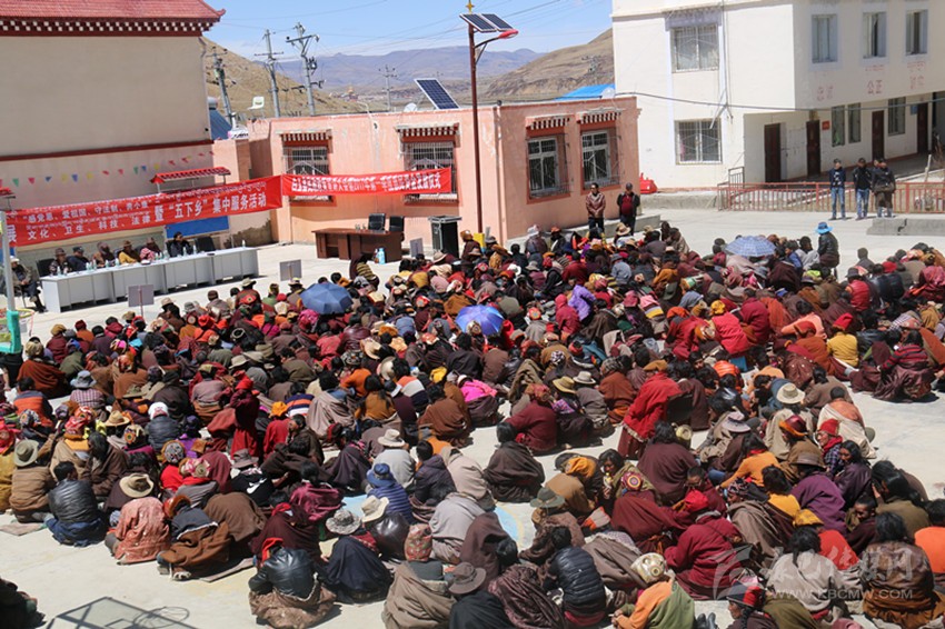 白玉縣牧區(qū)納塔鄉(xiāng),高原烈日下,1000多牧民和僧人盤腿坐在地上,聚精會神聆聽,麥克風里傳出抑揚頓挫的藏語,本地諺語、民間故事配合著扶貧政策、法律法規(guī),通過一個個生動的比喻,回響在牧民耳畔。