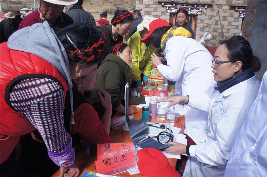 醫(yī)護(hù)人員仔細(xì)詢問病情,拿出聽診器聽心率,又用血壓計(jì)為他量血壓??粗t(yī)生一陣忙活,彭措老人感激地說:“謝謝你們!”經(jīng)過檢查,老人身體并無大礙,只是血壓稍高,醫(yī)生當(dāng)場(chǎng)開了處方。