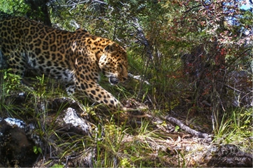 2016年11月7日5時(shí)03分,天還沒(méi)亮?xí)r,相機(jī)拍到了豹子的行蹤。