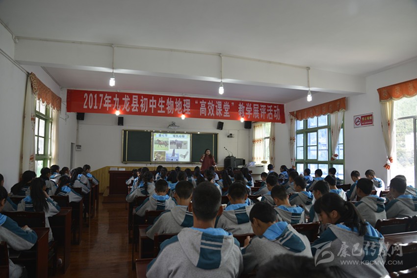 九龍縣2017年初中生物地理“高效課堂”教學(xué)展評(píng)活動(dòng)現(xiàn)場(chǎng)。