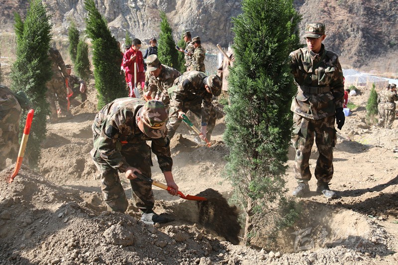 在該縣瀘橋鎮(zhèn)五里溝村雅康高速公路瀘定連接線公路兩旁,參加植樹的州級領(lǐng)導(dǎo)及干部職工和駐瀘官兵,有的杠樹苗、有的提工具、有的拿水桶,好一派繁忙的景象……植樹活動現(xiàn)場,有人在挖坑、有人在扶苗、有人在填土、有人在澆水,通過近兩小時的種植,剛通車不久的公路兩旁呈現(xiàn)出生機(jī)勃勃的景象。據(jù)了解,當(dāng)天的植樹活動共栽下塔柏、海棠、桃樹、三角梅共計2000多株,其中,塔柏約1500株左右。