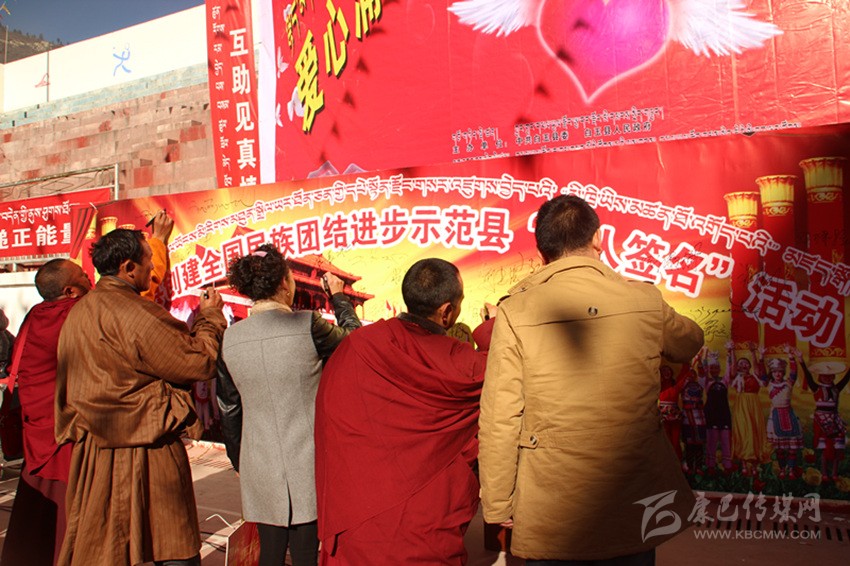 其實,在白玉,像澤稱降措這樣感人肺腑的故事絕非個案。采訪中,筆者細(xì)細(xì)梳理五年來白玉的創(chuàng)建舉措與成績,完全可以用“務(wù)實”“扎實”這四個字來形容。自2014年創(chuàng)建活動啟動以來,縣委、縣政府嚴(yán)格按照“三年創(chuàng)建、四年提升”要求,緊扣“八進(jìn)活動、共建對子”兩個關(guān)鍵,聚焦“民族團(tuán)結(jié)促發(fā)展、民族團(tuán)結(jié)促穩(wěn)定、民族團(tuán)結(jié)促民生”三大目標(biāo),采取“精準(zhǔn)安排、精準(zhǔn)施策、精心打造、精細(xì)管理”四項舉措,并通過層層簽訂目標(biāo)責(zé)任書和層層落實創(chuàng)建標(biāo)準(zhǔn)、測評指標(biāo),進(jìn)而形成了“黨委統(tǒng)一領(lǐng)導(dǎo)、黨政齊抓共管、部門各司其職、社會廣泛參與”的創(chuàng)建工作格局;采取“年度定方案、季度有督查、月月抓推進(jìn)、層層重落實”的方式,通過召開專題會、動員會、現(xiàn)場會、督導(dǎo)會、匯報會等形式,抓問題、添措施、促整改、補短板、求提升,一系列動真碰硬的推進(jìn),使得創(chuàng)建工作由“虛”變“實”;按照“精準(zhǔn)宣講、掛圖作戰(zhàn)、對單宣講、對村消號、定學(xué)式”的宣講思路,采取“縣到鄉(xiāng)、鄉(xiāng)進(jìn)村、村入戶、寺廟與僧尼”四個面對面等方式,并結(jié)合常態(tài)化開展的“四下鄉(xiāng)”活動,廣泛學(xué)習(xí)宣傳黨的民族理論、宗教政策、法律法規(guī)以及各項惠農(nóng)惠民政策。五年來,全縣累計出動宣講服務(wù)人員1180人次,開展宣講宣教、“四下鄉(xiāng)”活動以及民族團(tuán)結(jié)“八進(jìn)”活動多達(dá)988場次,覆蓋基層干部、農(nóng)牧民群眾和及寺廟近8萬人次,發(fā)放各類宣傳資料2.3萬余份、圖書光盤4500余本(張),贈送各種書籍4130余冊,放映電影152場次;在主要街道、繁華路段、出租車頂屏、燈箱燈桿以及干線公路沿線堡坎,設(shè)置LED屏、宣傳牌、滾動標(biāo)語和墻體標(biāo)語,推送各類創(chuàng)建信息上萬余條,在各機(jī)關(guān)、單位、醫(yī)院、學(xué)校、寺廟、鄉(xiāng)鎮(zhèn)、村組(社區(qū))設(shè)置民族團(tuán)結(jié)標(biāo)語、宣傳櫥窗、展板和文化墻,推出各類宣傳欄2145個、宣傳展板 435個;在縣級宣傳平臺開設(shè)專欄,完成各類主題宣傳300余場次;舉辦創(chuàng)建“萬人簽名”、鍋莊節(jié)、演講比賽、籃球友誼賽、知識競賽、文藝演出等各類民族團(tuán)結(jié)主題活動近20場,實現(xiàn)了創(chuàng)建宣講宣傳宣教全方位、多層面、立體式和廣覆蓋;切實將民族團(tuán)結(jié)工作與脫貧攻堅、基層黨建、群眾工作、鄉(xiāng)村治理、依法治縣等有機(jī)結(jié)合,大力開展干群結(jié)對認(rèn)親、干部聯(lián)寺聯(lián)僧、支部共建共創(chuàng)以及警民共建等活動;切實在廣大農(nóng)牧民群眾、幫扶援建隊伍、宗教寺院、學(xué)校師生、企業(yè)以及部隊中發(fā)現(xiàn)典型、宣傳典型,進(jìn)而在全縣上下形成了“學(xué)先進(jìn)、趕先進(jìn)、當(dāng)標(biāo)兵”的濃厚氛圍;采取政策傾斜、整合項目、配套資金等措施,狠抓示范點規(guī)范化建設(shè)。目前,全縣所有鄉(xiāng)(鎮(zhèn))、縣級黨政機(jī)關(guān)、武警部隊,45%以上的村(社區(qū))、企事業(yè)單位和寺廟已成為民族團(tuán)結(jié)進(jìn)步示范地區(qū)或示范單位;……精準(zhǔn)發(fā)力、持續(xù)給力的創(chuàng)建活動,有效形成了創(chuàng)建活動“人人參與、人人推動、人人負(fù)責(zé)、人人共享”的喜人局面。