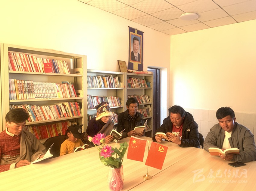 “平時(shí)只要有空,我們就到這里來聚會,看看書、聊聊天,有時(shí)村里會組織大家集中收看宣傳黨委政府政策的宣傳片,讓我們能及時(shí)了解國家方針政策。”4月13日午飯后,色達(dá)縣大則鄉(xiāng)厚門村的文化活動室,和往常一樣,又陸陸續(xù)續(xù)迎來三三兩兩的村民們。一樓的圖書室,幾位村民正在安靜地看書,有漢語的,也有藏語的,他們身后兩面的書架上,收藏了上萬本各類書籍,其中藏語書籍占了一半以上,還有一些光碟,都是歷次中央、省、州重大會議的宣講內(nèi)容。在二樓的會客室,49歲的村民擁巴和鄉(xiāng)親們正熱烈地聊著今年脫貧攻堅(jiān)的形勢。