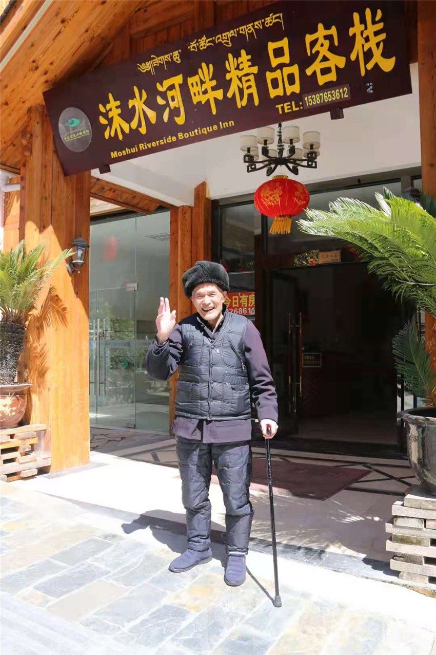 不知不覺中,采訪到了尾聲。伍國(guó)梁堅(jiān)持送記者離開,步伐雖緩,每一步都踩得很穩(wěn)。當(dāng)走出“沫水河畔精品民宿”大門時(shí),伍國(guó)梁一句“Welcome To MoXi!”令記者十分感動(dòng)。因?yàn)?,這話語(yǔ)背后,是一坐小鎮(zhèn)幾十年間的變化,也是一位耄耋老人對(duì)逝去歲月的認(rèn)可,還有對(duì)未來的美好憧憬!