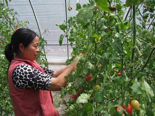 “盛煌公司來(lái)這里開(kāi)展蔬菜大棚建設(shè)以后,每畝每年按照1500元的標(biāo)準(zhǔn)支付了村民的土地流轉(zhuǎn)租金。我是外地嫁到這里來(lái)的,沒(méi)有土地,他們雇傭我來(lái)務(wù)工,每個(gè)月按照1800元支付我的工資,每個(gè)月還可以休息兩天。”正在大棚里摘水果番茄的村民陳國(guó)蓉知足地說(shuō)。