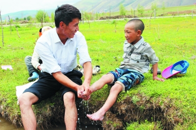 近日,筆者在仁果下鄉(xiāng)采訪時(shí),看到一個(gè)年輕人正在給孩子洗腳。“這個(gè)孩子是你的親戚嗎?”“不是哦,他們都是我的學(xué)生,因?yàn)楹⒆犹×耍蛶退麄兿茨_,希望孩子從小養(yǎng)成講衛(wèi)生的好習(xí)慣。”看著筆者不解的目光,他解釋說(shuō)。