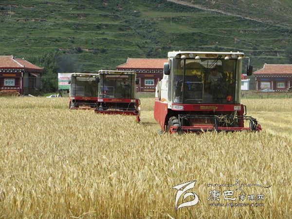 本網(wǎng)訊(胡筱紅 龍正芳 文/圖) 高原的八月是絢麗多彩的時(shí)節(jié),是糧食收獲的季節(jié)。爐霍縣300畝全程機(jī)械化青稞作業(yè)示范片項(xiàng)目機(jī)收工作于8月20日正式啟動(dòng),共出動(dòng)大型聯(lián)合收割機(jī)5臺、拖拉機(jī)5臺同時(shí)作業(yè),正常情況下一臺收割機(jī)一天可以收割65至70畝,青稞示范片不出5天就能完成收割。對比以往的種植和收獲方式,全程機(jī)械化作業(yè)從播種到收獲帶來的社會(huì)效益及經(jīng)濟(jì)效益都遠(yuǎn)遠(yuǎn)高于傳統(tǒng)種植方式。