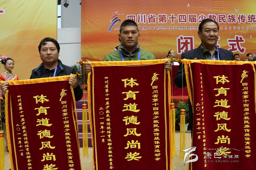 在閉幕式上的頒獎儀式上,本屆組委會分別頒發(fā)了本屆民運會各競賽項目團體一等獎、開幕式大型文體表演特等獎、體育道德風(fēng)尚獎。我州代表團獲本屆民運會表演項目一等獎、體育道德風(fēng)尚獎。據(jù)悉,獲得體育道德風(fēng)尚獎的還有宜賓市代表團、阿壩藏族羌族自治州代表隊、涼山彝族自治州代表隊、成都市代表團、攀枝花市代表團、瀘州市代表團、綿陽市代表團、樂山市代表團、廣安市代表團、達(dá)州市代表團、雅安市代表團、西南民族大學(xué)代表團、成都體育學(xué)院代表團。